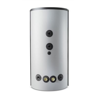 Dubbelmantlad ackumulatortank med vattenmagasin av invändigt kopparfodrad stålplåt, volym 445 liter. Volym i mantelrum 285 liter
